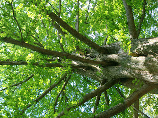 両手を回しても届かない幹回りの木漏れ日は快適そのものです。